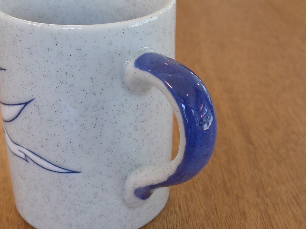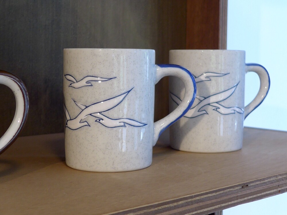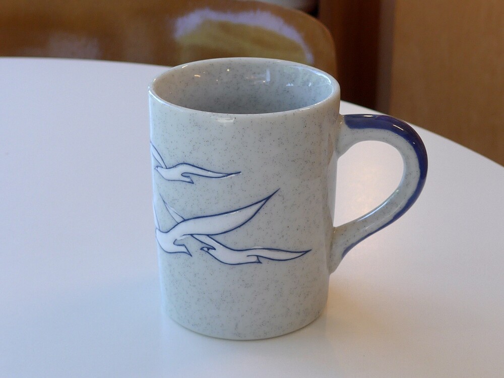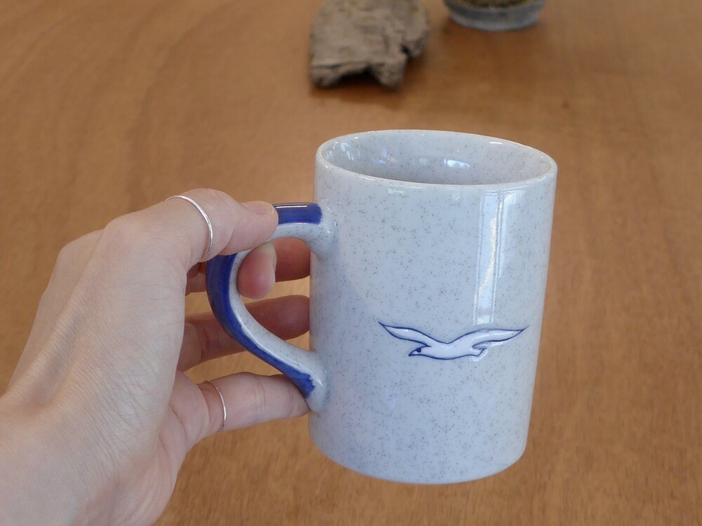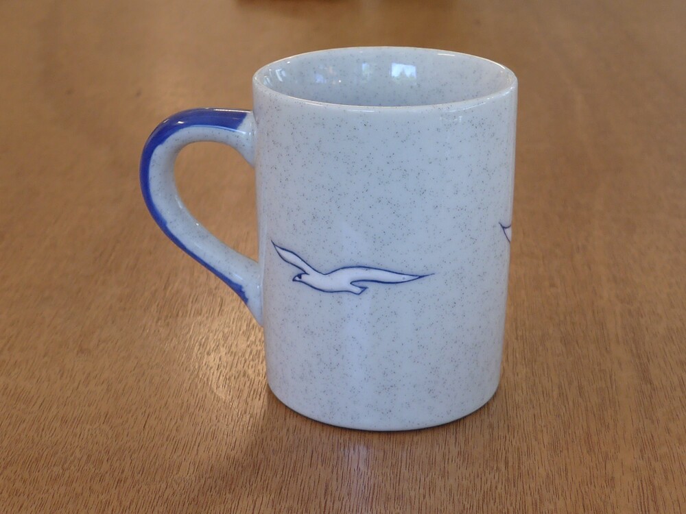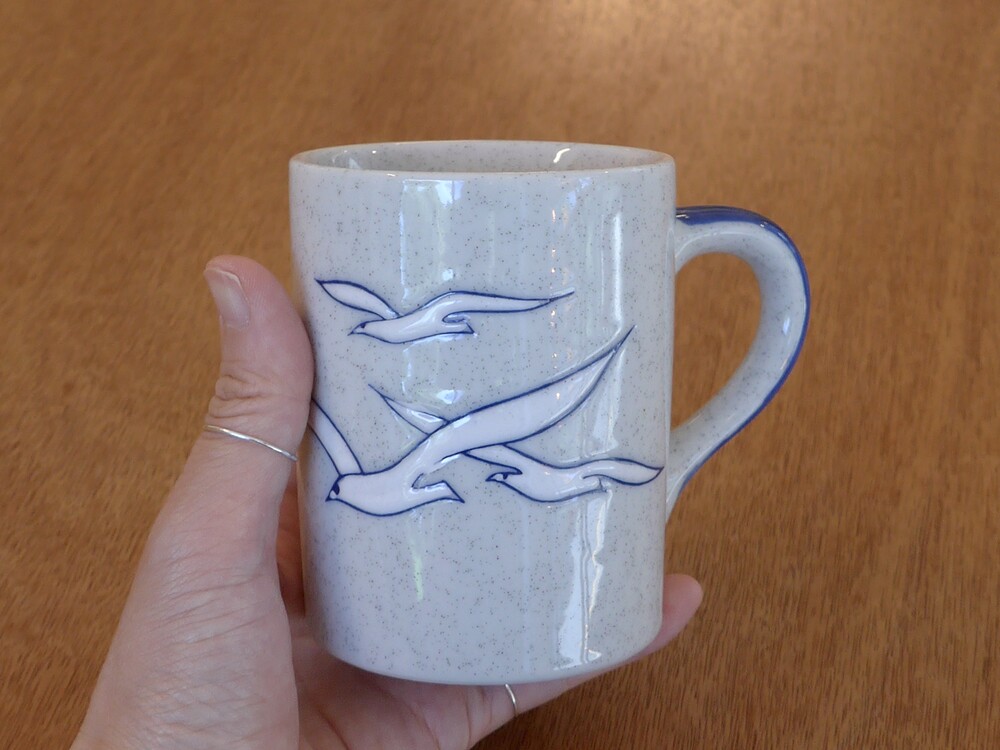 blue speckled seagulls mug