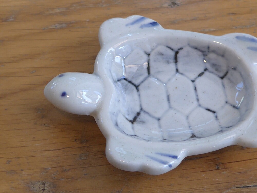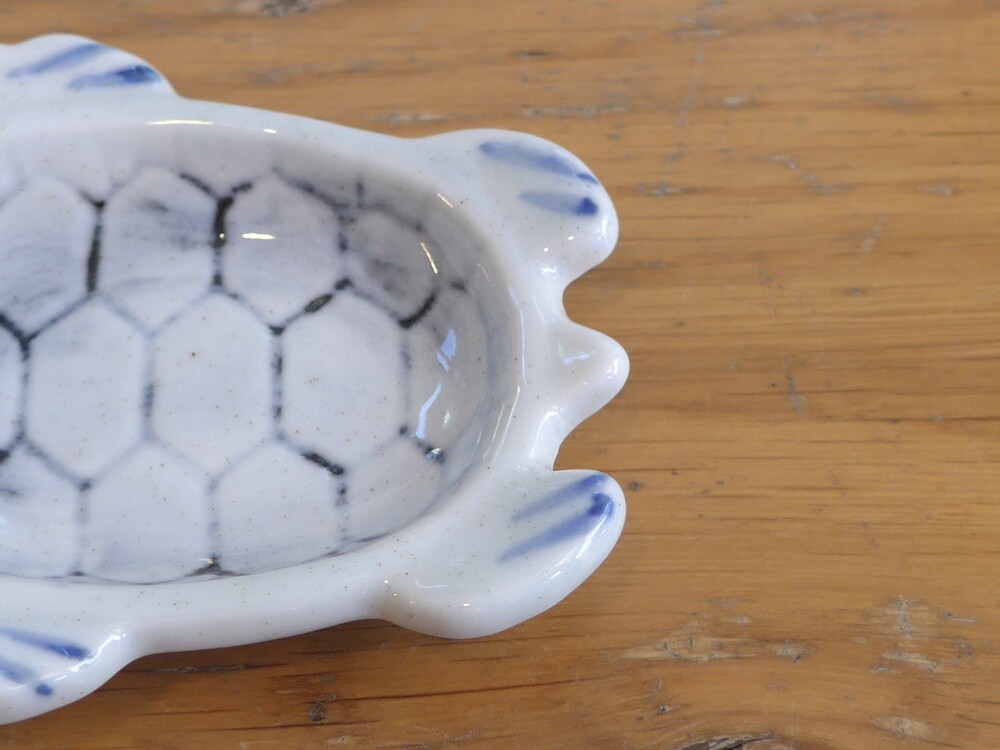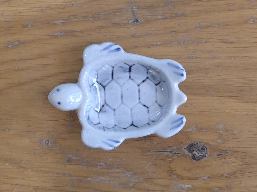 전체적으로 푸른빛을 띄는 거북이모양의 종지입니다.
