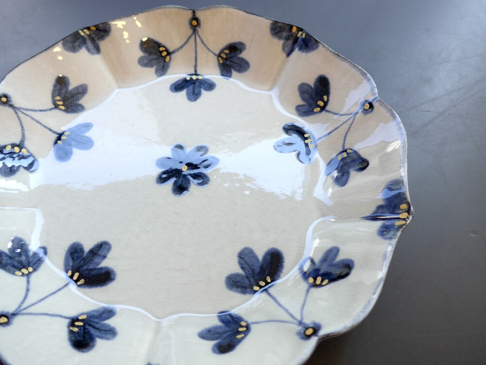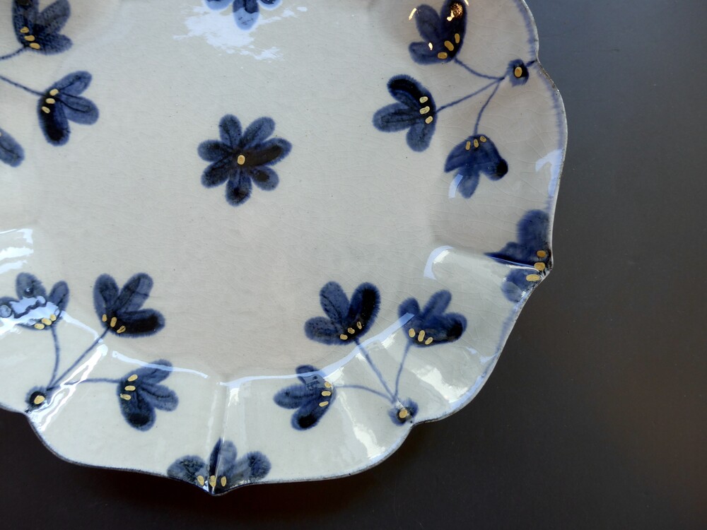 금박, 블루채색 아리타야끼 접시 (21cm)