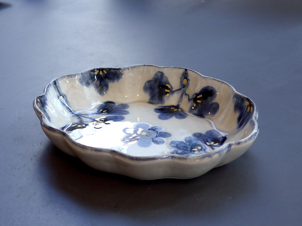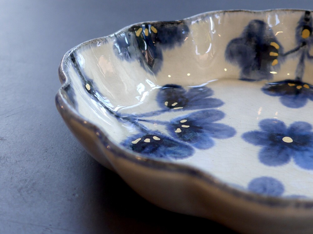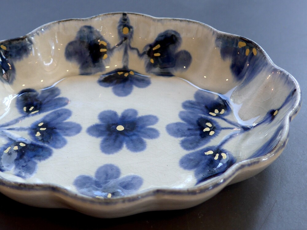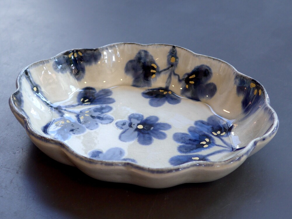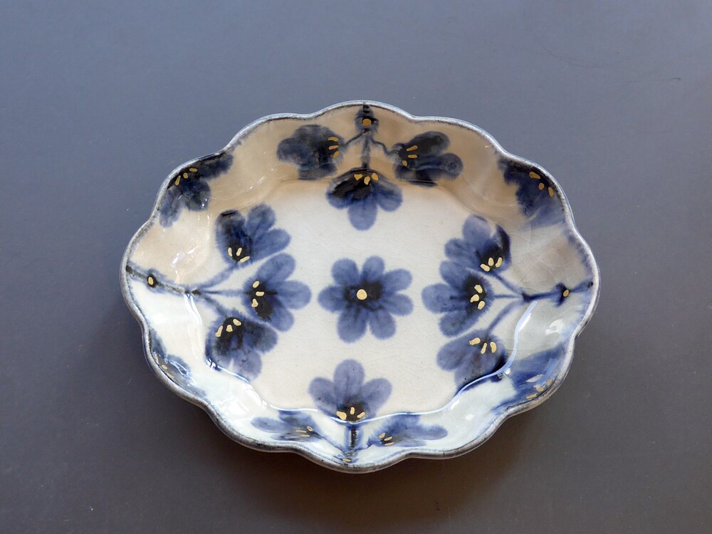금박, 블루채색 아리타야끼 물결타원 미니접시 (13.5cm)