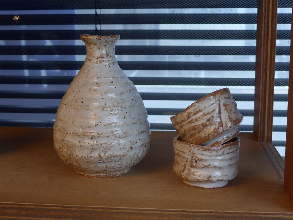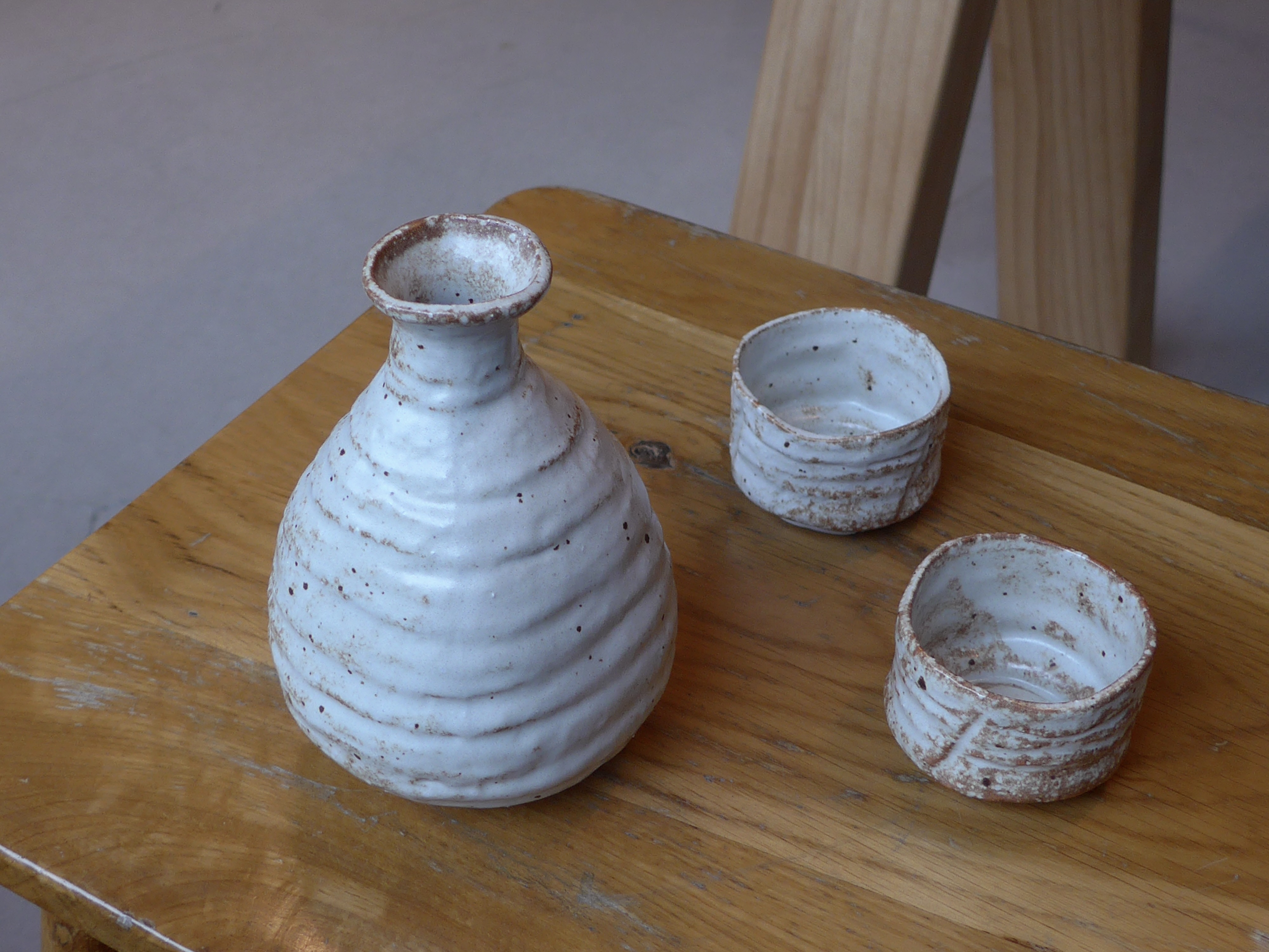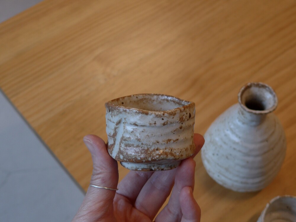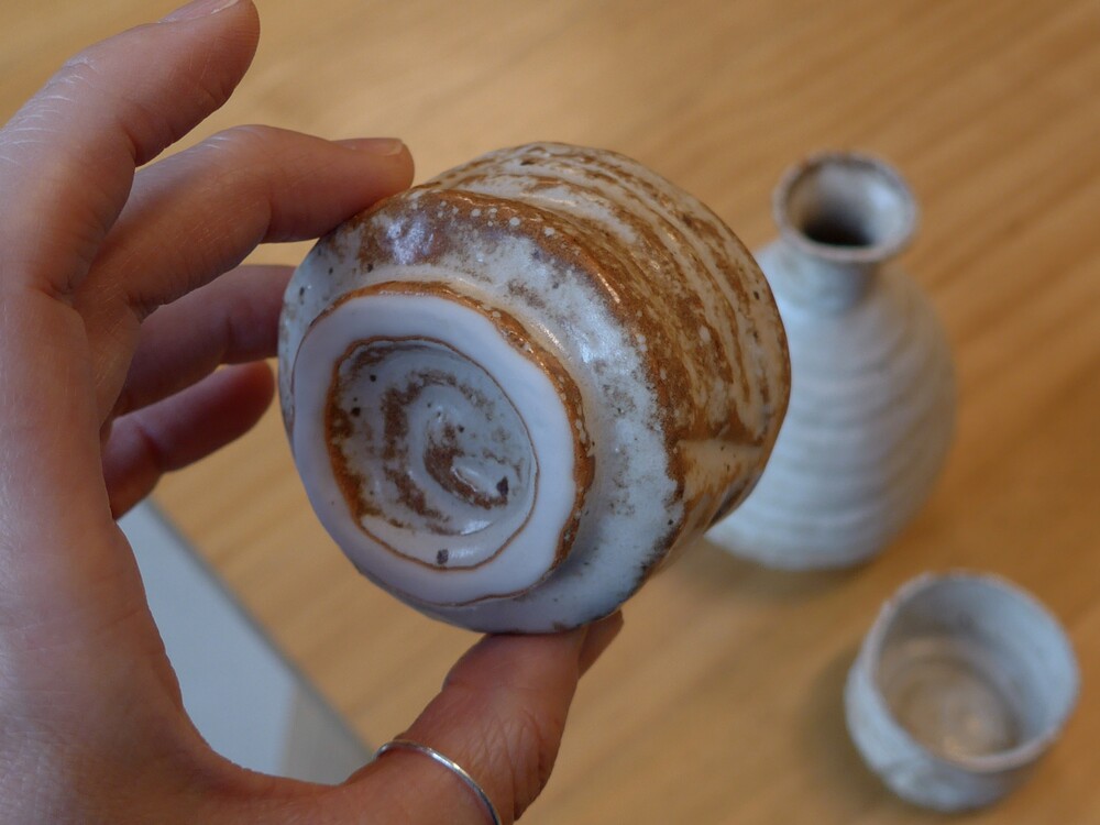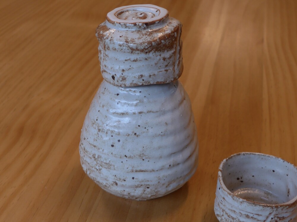 가벼운 무게감이 특징인 도자기 술병과 술잔입니다.