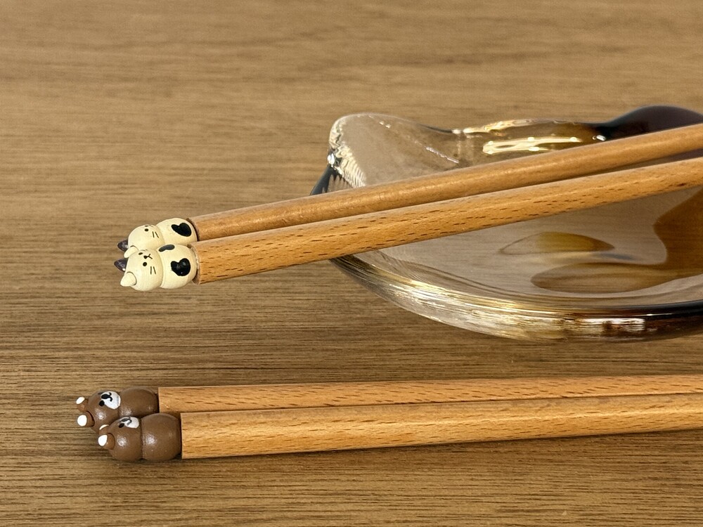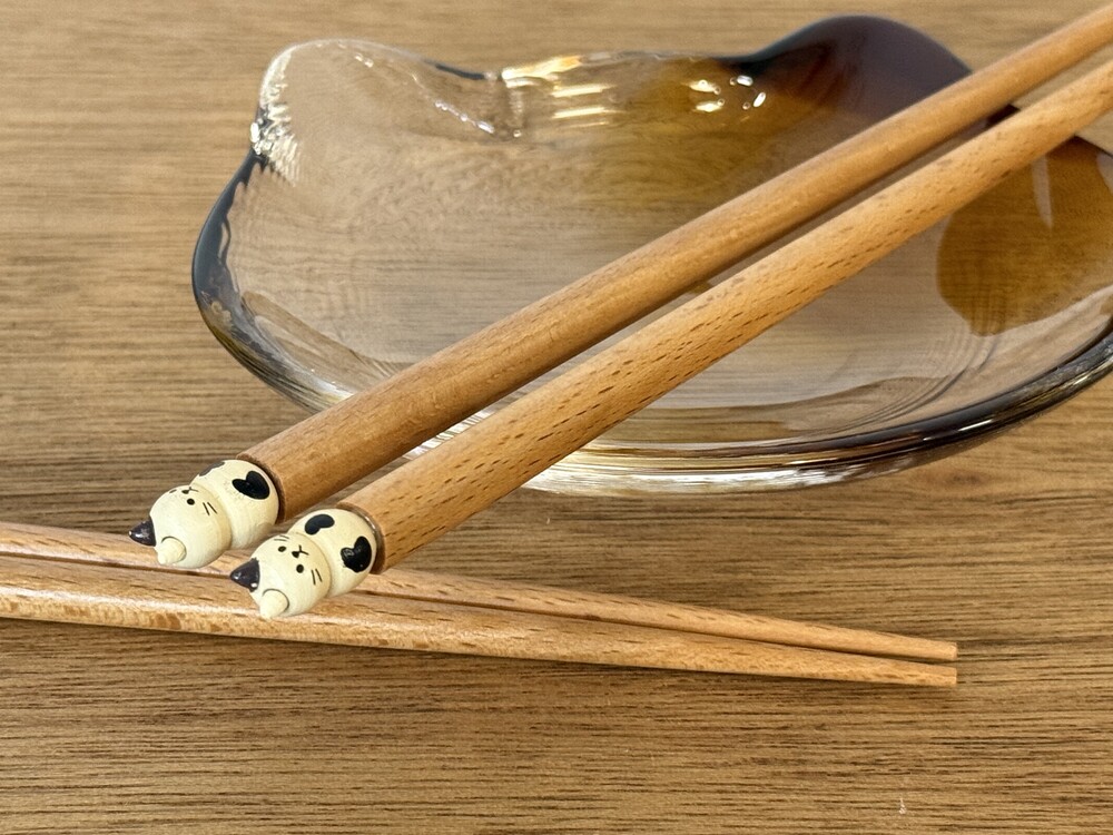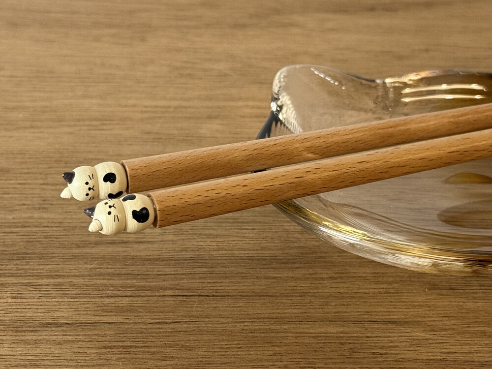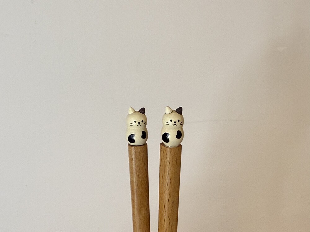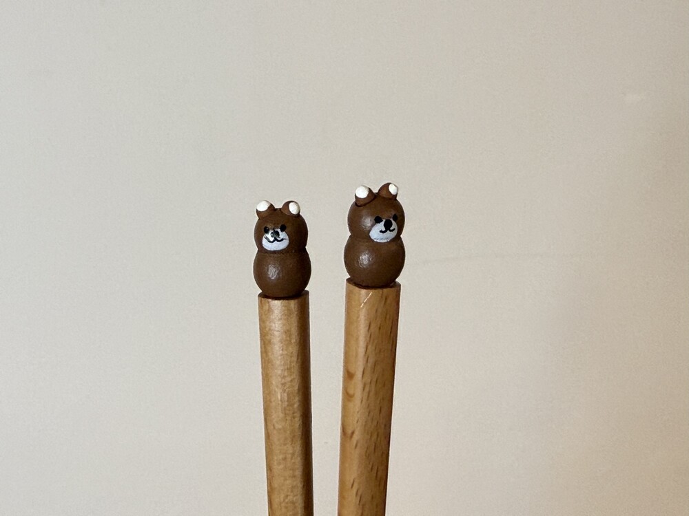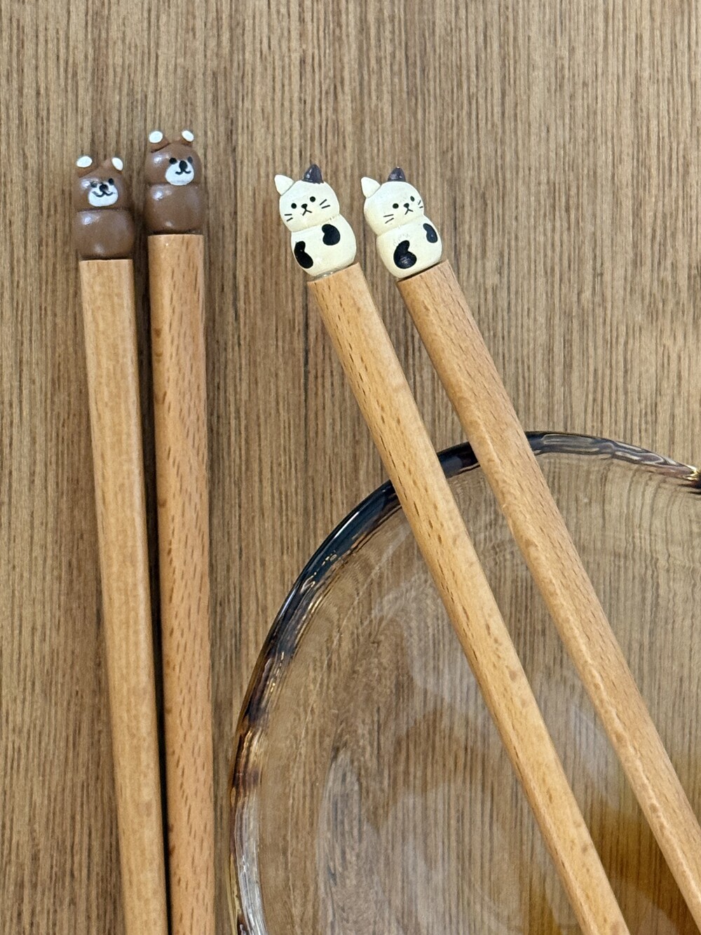 귀여운 고양이와 곰돌이 나무 조각이 붙어있는