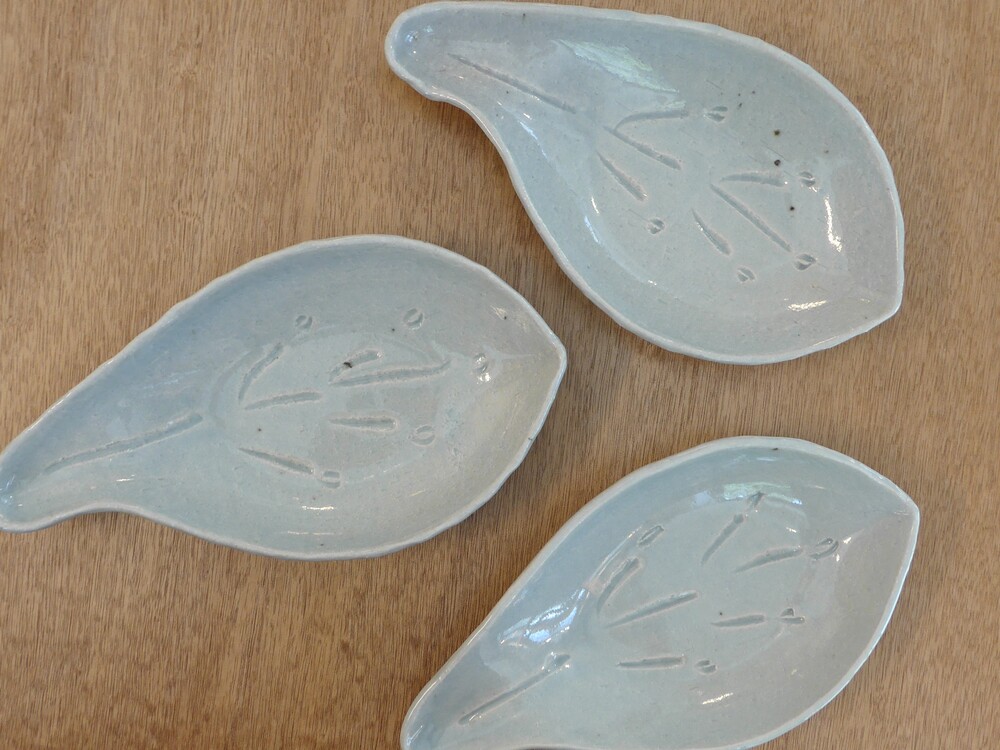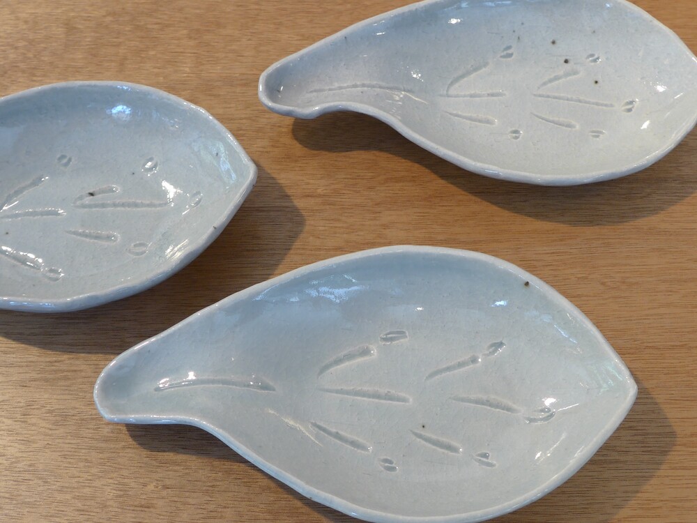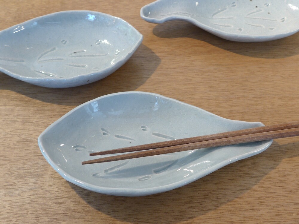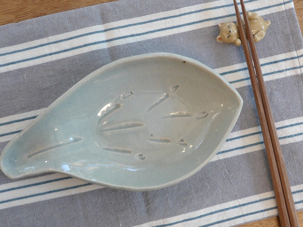 스카이블루 나뭇잎 접시
