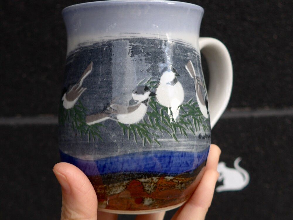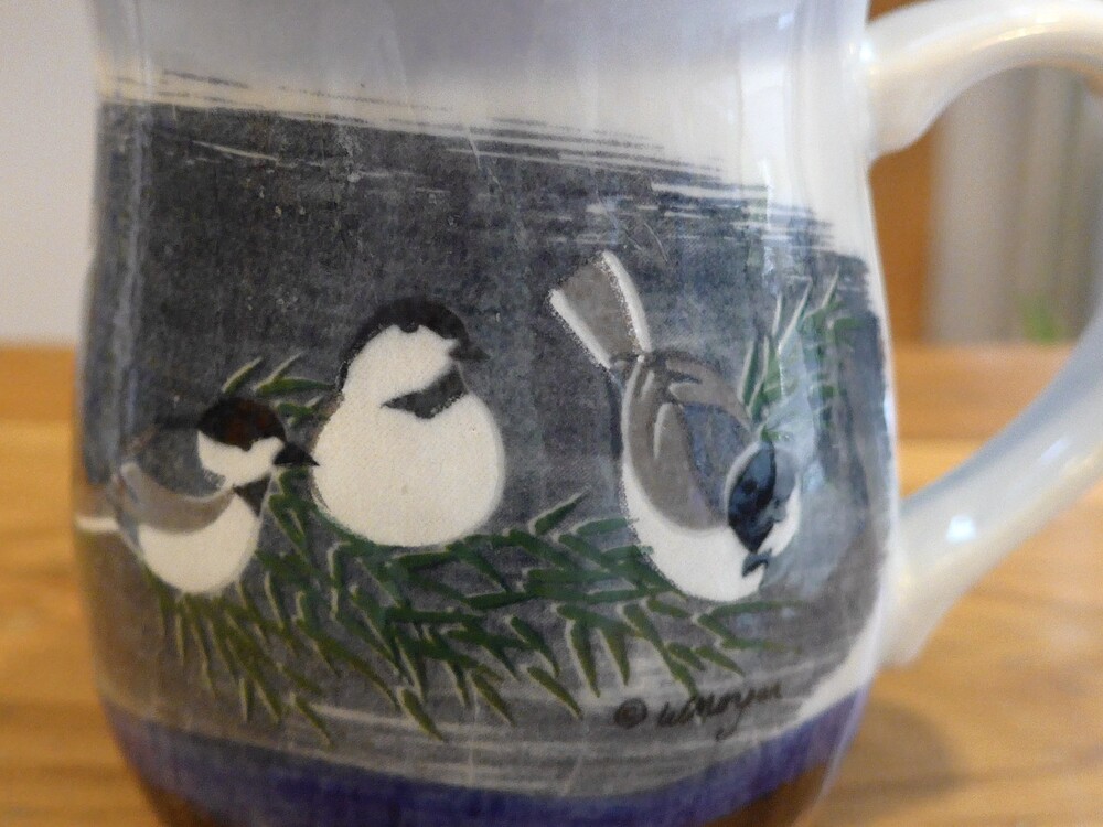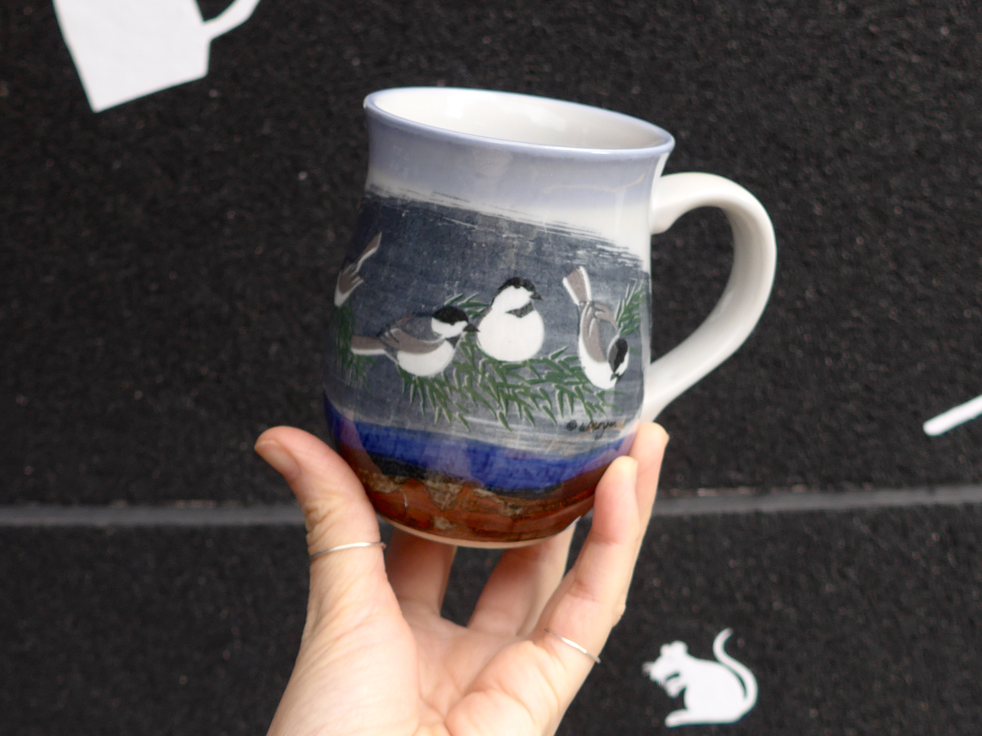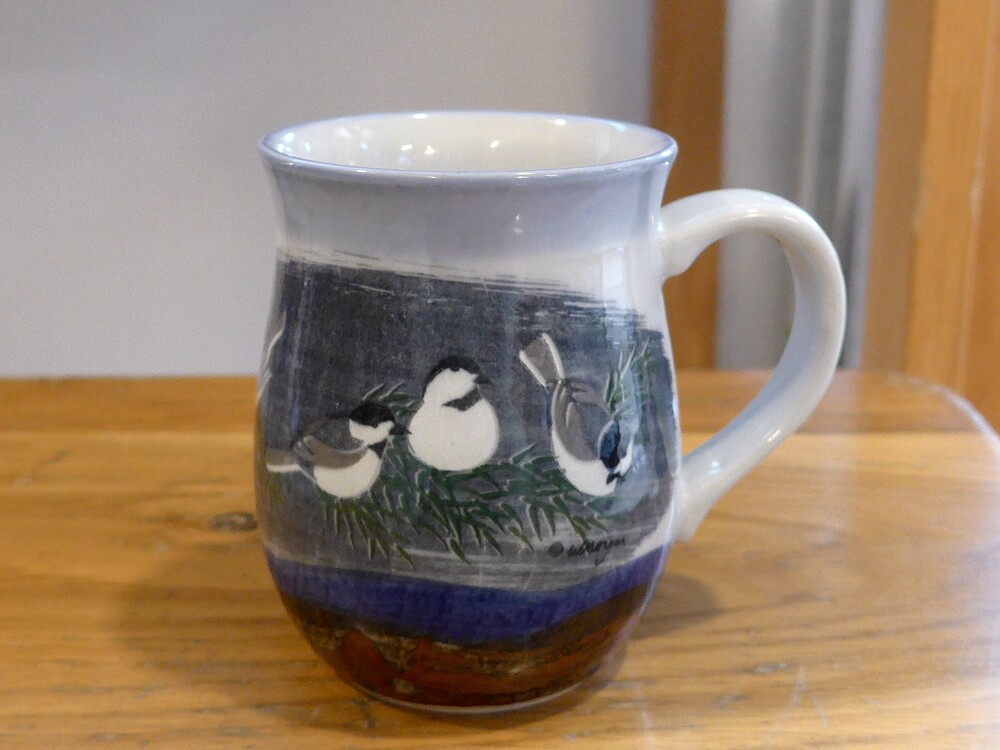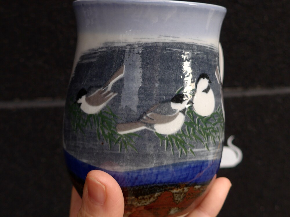 박새라는 새가 새겨진 호리병 모양의 머그잔입니다.